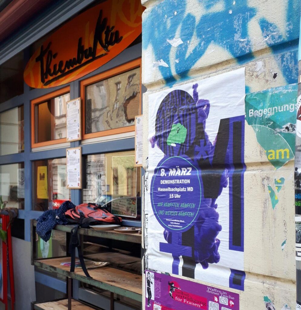 Der von uns Café genannte Raum wird von den Hausbewohner*innnen, Personen aus Vereinen, sowie befreundeten Gruppen und Menschen für öffentliche Veranstaltungen genutzt. Dieser Ort dient den Akteur*innen als Plattform für ihre Arbeit in Magdeburg sowie ihr Wirken im gesamtgesellschaftlichen Kontext.